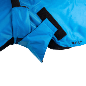 Jacheta Blest este special creată pentru alergare, dar este, de asemenea, minunată și pentru a vă menține câinele cald atunci când faceți o pauză în zilele reci. Jacheta este ușoară și se împachetează cu ușurință într-o sanie sau centură. Această jachetă a fost dezvoltată cu unii dintre cei mai buni mushers din lume și este acum văzută adesea la competiții. Blest Jacket are o construcție cu trei straturi, cu o singură carcasă impermeabilă și rezistentă la vânt, care acoperă izolația PrimaLoft. Căptușeala interioară este realizată cu o oprire lină pentru a evita frecare. Geaca Blest este ușor de îmbrăcat și dezbrăcat, chiar dacă câinele dvs. este în ham. Geaca rămâne în poziție cu elemente de fixare puternice pe partea din față a pieptului și sub stomac. Designul ergonomic asigură o potrivire excelentă și o libertate deplină de mișcare, protejând în același timp pieptul, umerii, coapsele și stomacul. Este disponibil și un paravent opțional pentru protejarea organelor genitale masculine. Cu o buclă reflectorizantă plasată pe partea gâtului, puteți observa mișcarea câinelui în întuneric. Hamul trece printr-o buclă de pe spatele jachetei pentru a preveni ridicarea acestuia. Geaca Blest este albastră cu detalii reflectorizante pentru o vizibilitate ridicată în întuneric. Disponibilă în dimensiunile S-XL. Dacă câinele dvs. este între dimensiuni, vă recomandăm să alegeți dimensiunea mai mare.