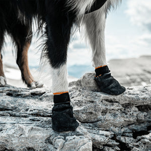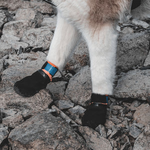 Aceste botine pentru câini sunt fabricate din material anti-tăiere de nivelul 5, înmuiate în cauciuc nitrilic pentru o protecție suplimentară. Cauciucul face șosetele rezistente la apă și oferă câinelui dvs. o bună aderență chiar și pe suprafețe alunecoase. Am dezvoltat aceste ghete de protecție pentru mushing și drumeții, dar toți câinii care au nevoie de protecție pentru labe pot folosi aceste ghete. Pe partea interioară, țesătura este fără sudură pentru a se evita descoaserea. Materialele moi permit labelor să aibă un contact bun cu pământul. Ghetele sunt fixate cu velcro elastic, ceea ce le face să stea bine pe labă. Ghetele Protector vin în pachete de patru bucăți.
