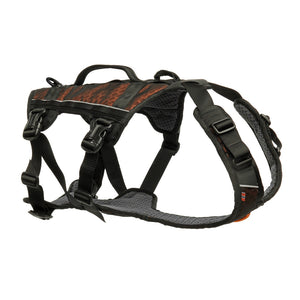 Hamul este reglabil în jurul gâtului și al pieptului. Patru catarame cu eliberare laterală facilitează punerea sau scoaterea hamului.