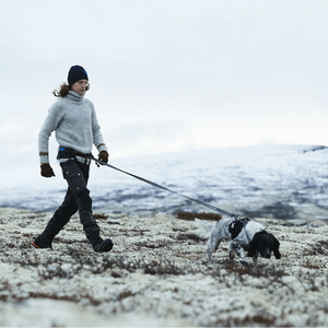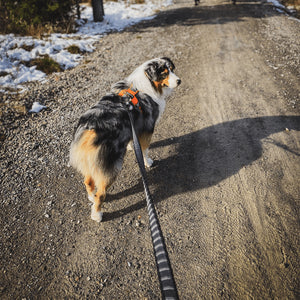 Seria Touring Bungee se integrează cu extensia noastră Y, Touring Double, în cazul în care doriți să mergeți cu doi câini. Bungee Double a fost inițial dezvoltată pentru utilizarea profesională în cursele de skijoring și canicross, dar este un echipament excelent pentru orice proprietar de câine activ. Lesa Bungee Double reduce presiunea atât asupra dumneavoastră, cât și asupra câinilor dvs. Lesa Y nu are părți metalice la mijloc pentru a evita efectul de balansare. Intersecția Y este statică, dar restul lesei Bungee este elastică. Calitatea de neegalat a acestui bungee este motivul pentru care îl vedeți la majoritatea sportivilor din canicross, skijoring și bikejoring. Miezul este fabricat din cauciuc de înaltă calitate, protejat de un strat durabil de poliester.